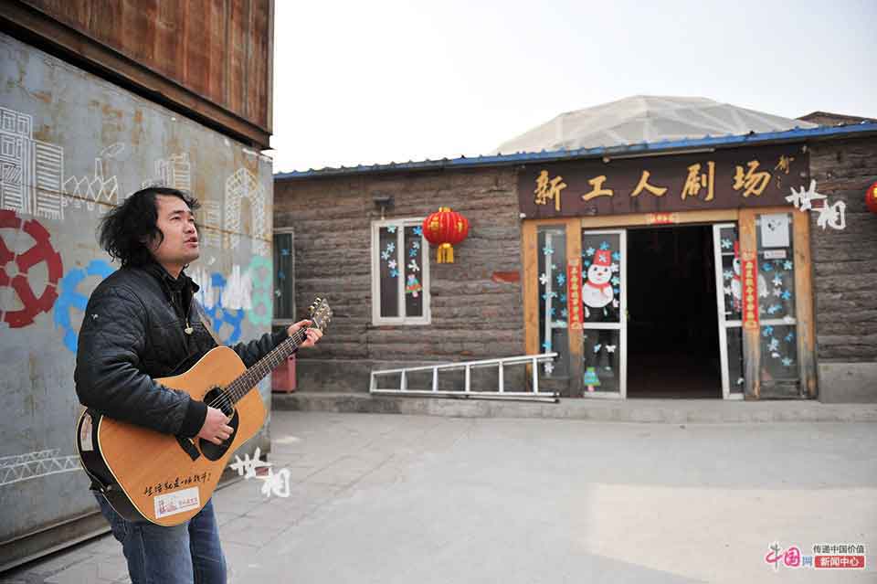 Xu Duo, chief director of the 2015 Migrant Workers' Spring Festival Gala, sings the song titled Beijing, Beijing.(China.org.cn/Wei Yao)