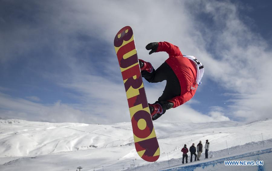 Cai Xuetong of China perform during the final of ladies' halfpipe at the 27th World Winter Universiade in Granada, Spain, Feb. 7, 2015. Cai Xuetong claimed the title with 82.50 points in the event. (Xinhua/Fei Maohua)