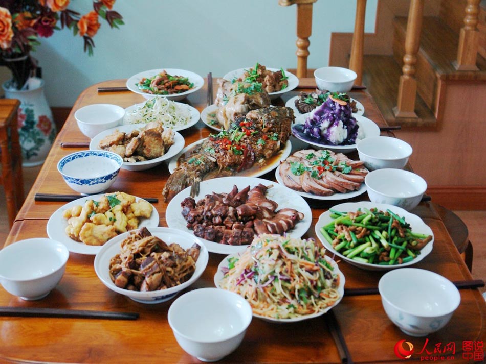 The Spring Festival is approaching. Chinese people are heading home from every corner of the world to enjoy this most significant family reunion. The most important feature of the Spring Festival, or Chinese New Year, is having abundant food. The gathering of the whole family for a banquet is the culmination of a year's hard work. (Photo/people.cn)