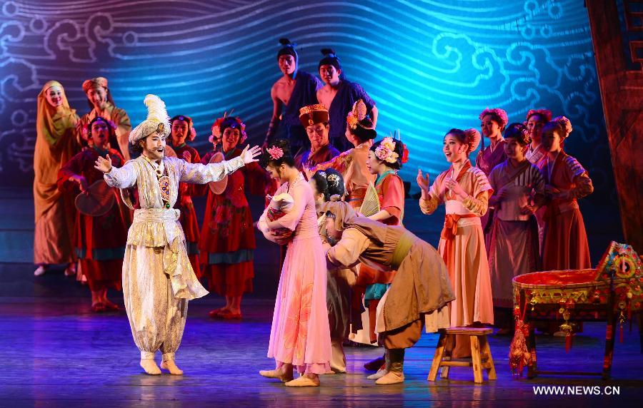 Actors perform during a dance drama entitled "The Dream of the Maritime Silk Road" in Quanzhou, southeast China's Fujian Province, Feb. 11, 2015. (Xinhua/Wei Peiquan)