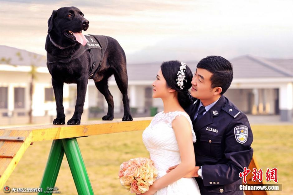 The Public Security Bureau of Wuxi city posts a series of cool wedding photos of policemen on its official Weibo account on Feb. 10, 2015. 11 policemen from different units took their wedding photos in uniforms. (Photo provided by Wuxi police department)