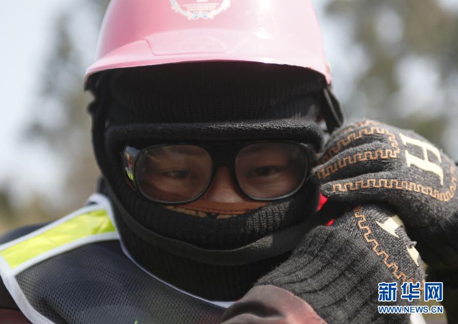 A rider puts on helmet and goggles to go on the journey in Longyan, southeast China’s Fujian province on Feb. 9, 2015. (Xinhua/Wang Shen)