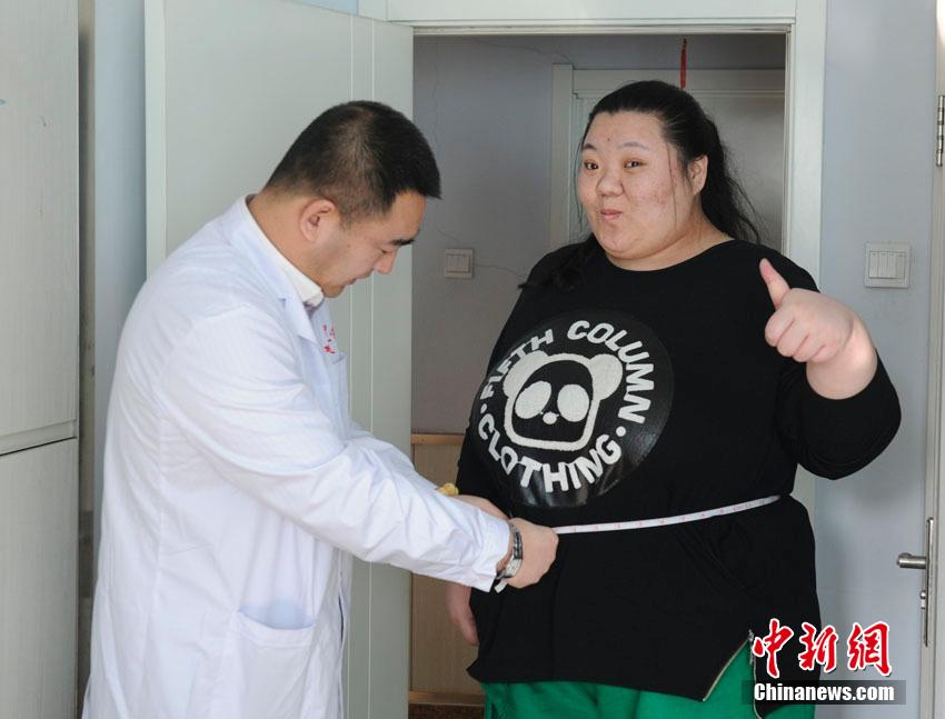 Liu Tingting reduces her waistline from 188 centimeters to 138 centimeters. (CNS/Zhang Yao)
