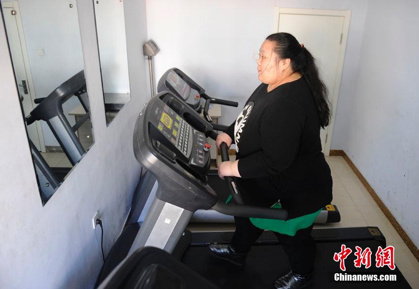 Liu Tingting takes exercises on the running machine. (CNS/Zhang Yao)