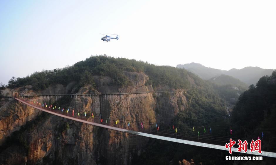 Central China's Hunan province launched its first helicopter sightseeing service in Shiniuzhai scenic spot, Pingjiang county on Feb. 12, 2015. The new service attracted many villagers, tourists and will promote the popularization of helicopter tour.