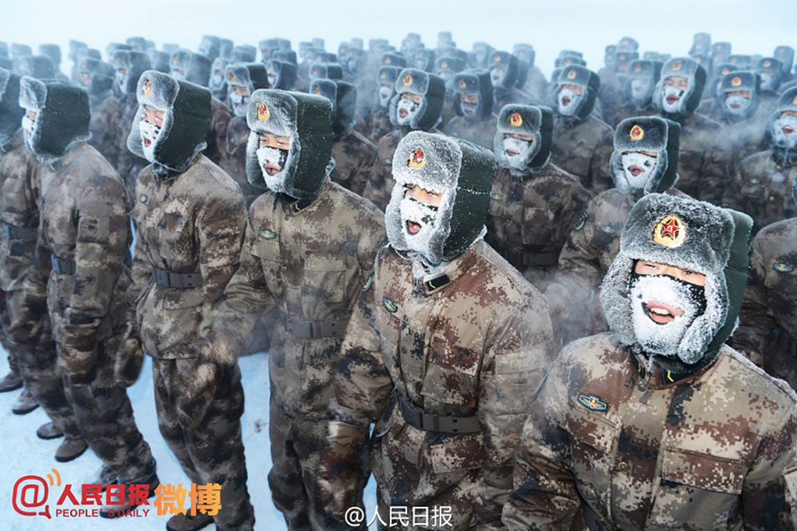 | To improve the capability to survive in the field combat, troops from Shenyang Military Region under Chinese People's Liberation Army (PLA) recently conducted patrol and military training in the area of Daxinganling in China's northern border region where the temperature hit minus 40 Celsius degrees. |