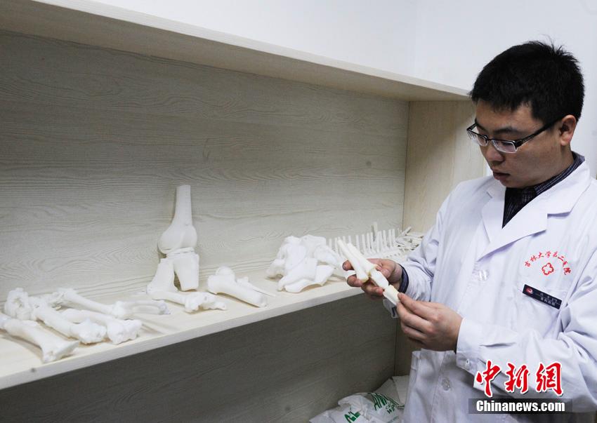 In recent years, along with the development of 3D printing, the technology is also applied in medical field. Some hospitals have begun to use 3D-printed artificial joints for prosthetic replacements in Changchun, northeast China’s Jilin province. At the same time, China’s first medical 3D printing R&D center was established in Changchun recently, which will promote the application of the technology in clinical medicine. (Chinanews/Zhang Yao)