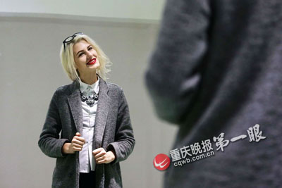 | A model practices her smile in front of the mirror to ensure that she is ready for a show at any time.(cqwb.com.cn/Ren Jun) |