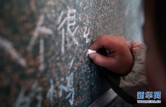 Liu Laiyi's hands turn red in the cold classroom. (Xinhua/Wan Xiang)