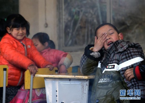 The smoke from the brazier chocked the children, making them rub their eyes. (Xinhua/Wan Xiang)