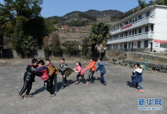 Children play games in the small playground. (Xinhua/Wan Xiang)
