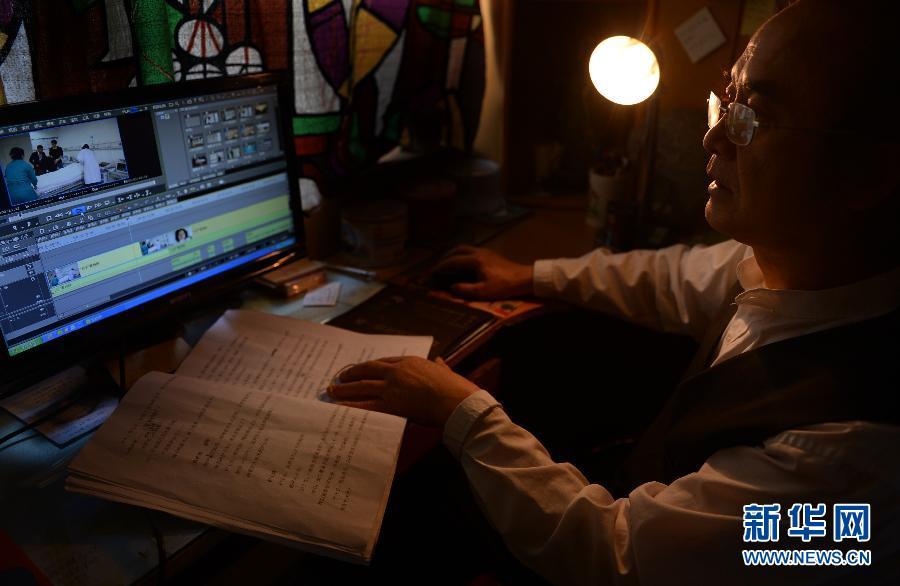 Mo Shubin edits a film. (Xinhua/Wang Fei)