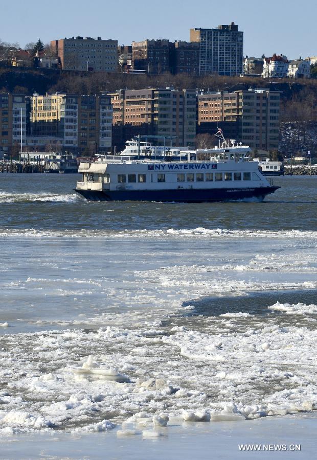 Ice floes are viewed along the Hudson River in New York City, the United States, on Feb. 20, 2015. New York City Emergency Management has issued a weather alert for dangerous cold temperatures for Feb. 20, followed by a wintry mix of snow, sleet and freezing rain. A bitterly cold chill known as the "Siberian Express" has enveloped much of eastern America, sending temperatures plummeting below their normal February levels to record lows in at least 100 places. (Xinhua/Wang Lei)