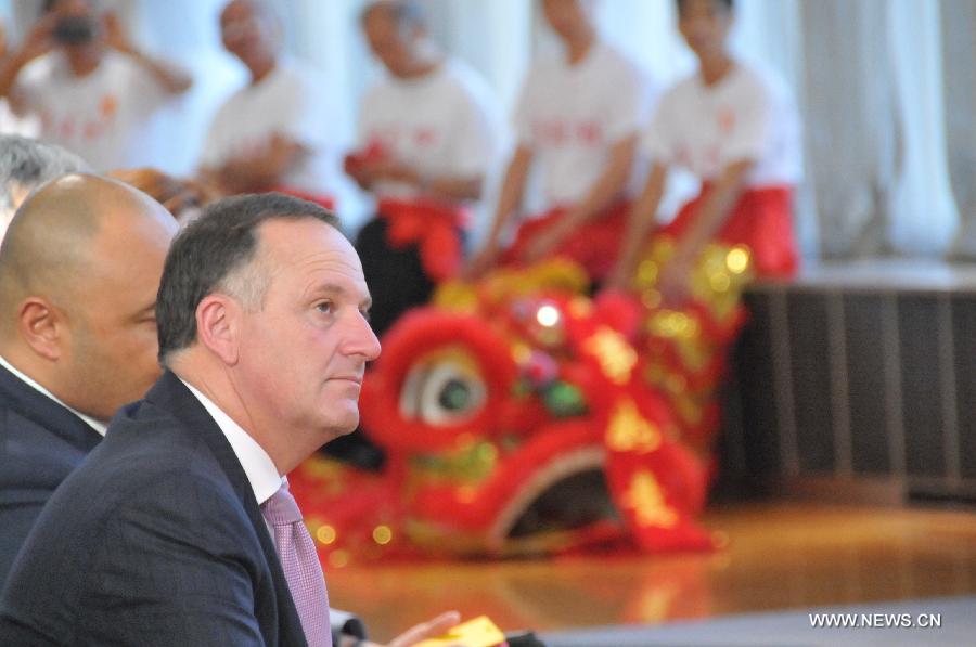 | New Zealand's Prime Minister John Key attends a reception held by the New Zealand government to celebrate the Chinese traditional lunar New Year, or Spring Festival, in Wellington Feb. 24, 2015. (Xinhua/Su Liang) |