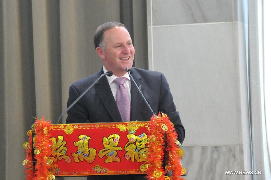 New Zealand's Prime Minister John Key addresses a reception held by the New Zealand government to celebrate the Chinese traditional lunar New Year, or Spring Festival, in Wellington Feb. 24, 2015. (Xinhua/Su Liang)