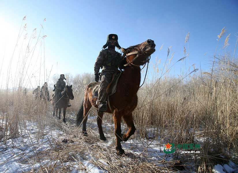Frontier guards patrol in border areas during the Spring Festival (4)