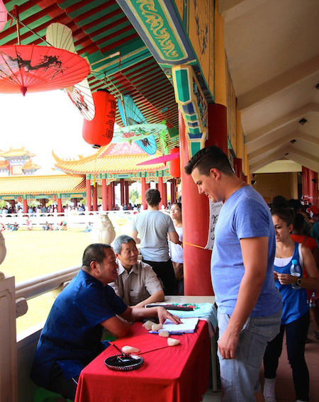 | Aside from offering a sentimental Chinese homeland taste, stalls at the Temple Fair also introduce Chinese culture to local South Africans. (People's Daily Online/ Zhang Jiexian) |