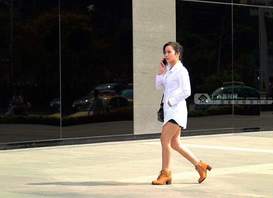 A great number of citizens wore summer clothes on Feb. 26, 2015 as the maximum temperature went up to 30 degrees Celsius on that day.(gxnews.com.cn/Huang Hechang)