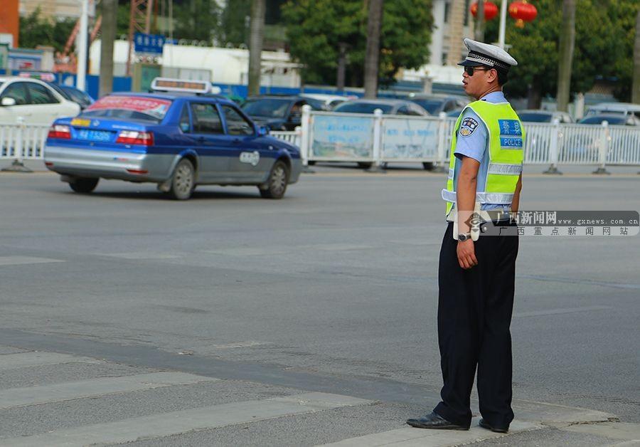 A traffic policeman dressed in summer uniform. (gxnews.com.cn/Huang Hechang)