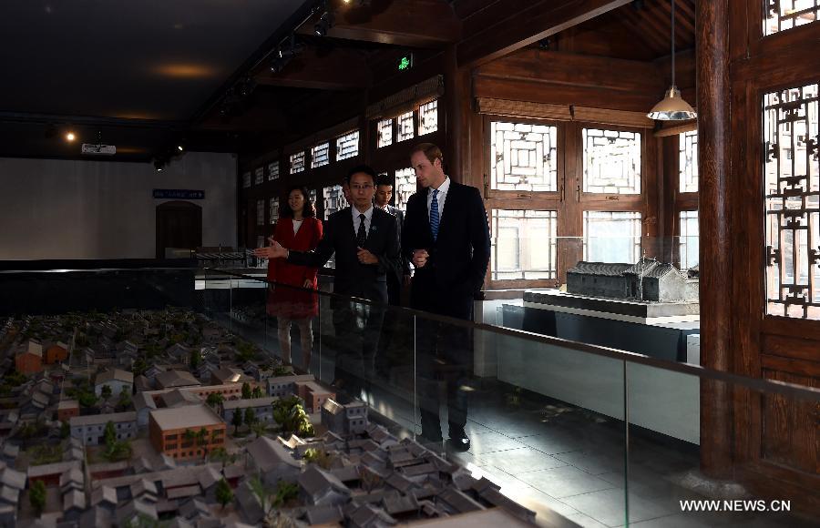 Britain's Prince William (1st R) visits the Shijia Hutong Museum in Beijing, capital of China, March 2, 2015. (Xinhua/Jin Liangkuai)