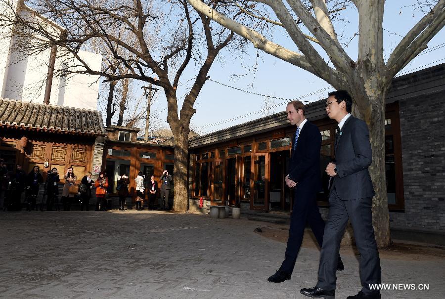| Britain's Prince William visits the Shijia Hutong Museum in Beijing, capital of China, March 2, 2015. (Xinhua/Jin Liangkuai) |