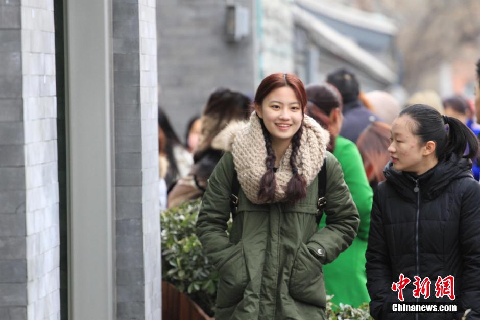 Students wait for the admission test at the Central Academy of Drama in Beijing on February 27, 2015. (CNS/Liu Xianguo)