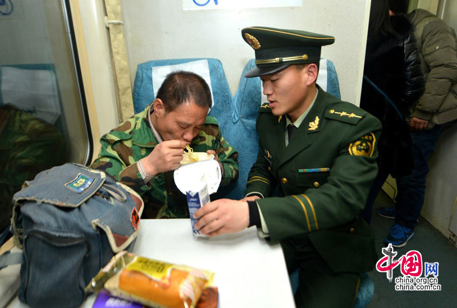 Teng Xingguo eats noodles. (China.com.cn/Cao Feng)