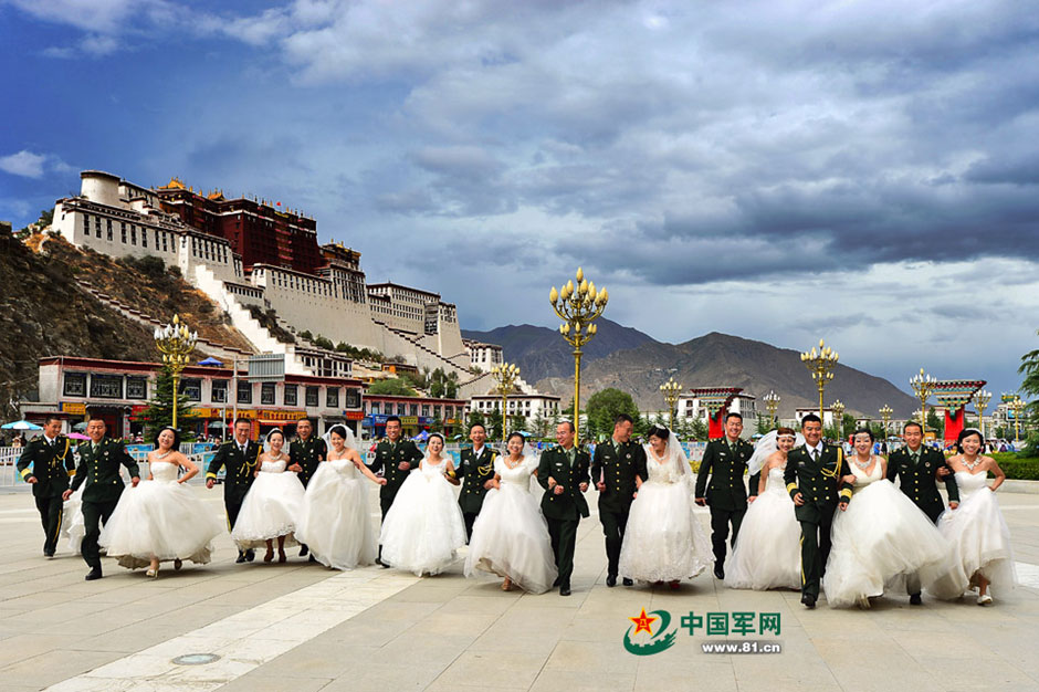 A romantic wedding ceremony is held in a military camp in Tibet, which witnesses the love of soldiers. (Photo/www.81.cn)