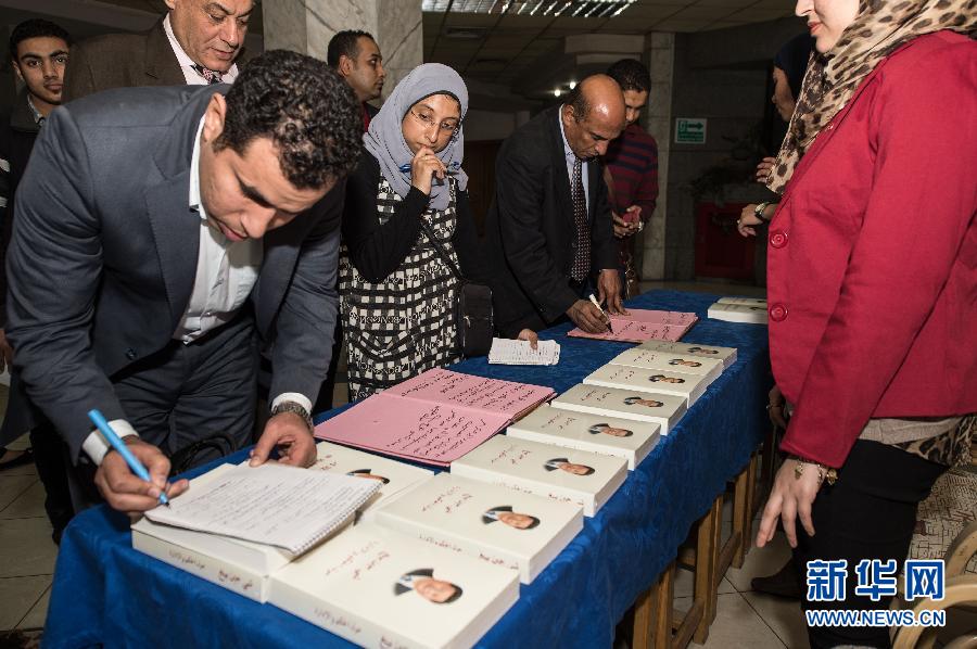 In Cairo, scholars sign in a promotion event for the book "Xi Jinping: The Governance of China" on Dec. 17, 2014. (Xinhua/Pan Chaoyue)