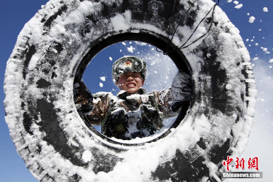 An infantry company which enjoys the title of "Tiger Company" has extreme training under harsh weather condition in Heihe city, Heilongjiang, March 2, 2015. Taking advantage of the local frigid climate, soldiers in Heihe work even harder to be qualified servicemen. (Chinanews/Wei Jianshun)