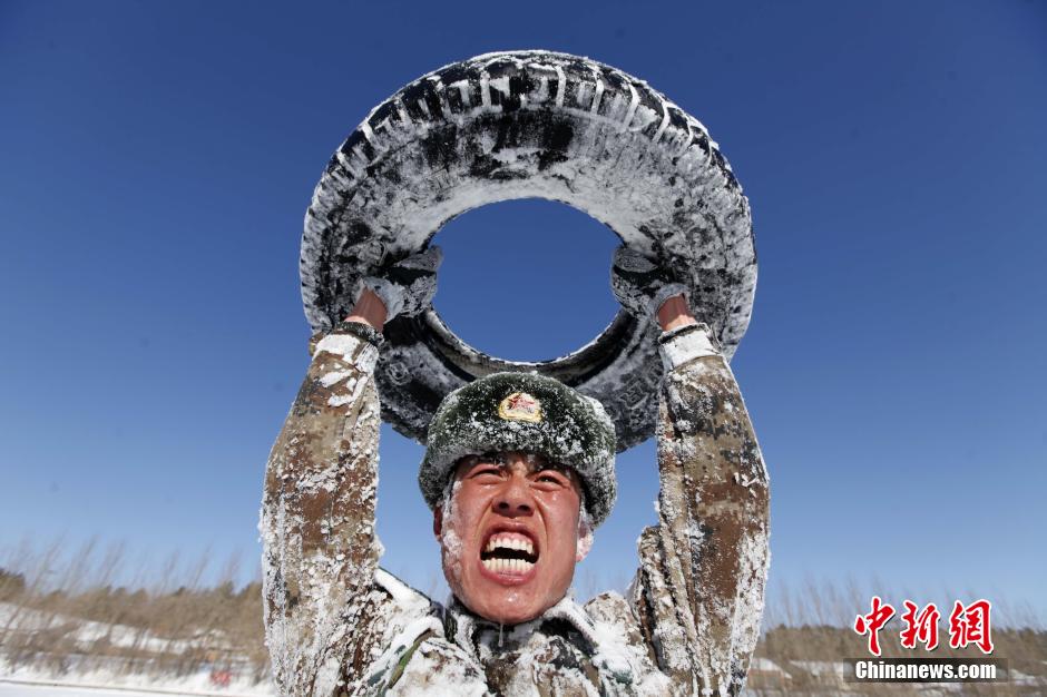 An infantry company which enjoys the title of "Tiger Company" has extreme training under harsh weather condition in Heihe city, Heilongjiang, March 2, 2015. Taking advantage of the local frigid climate, soldiers in Heihe work even harder to be qualified servicemen. (Chinanews/Wei Jianshun)