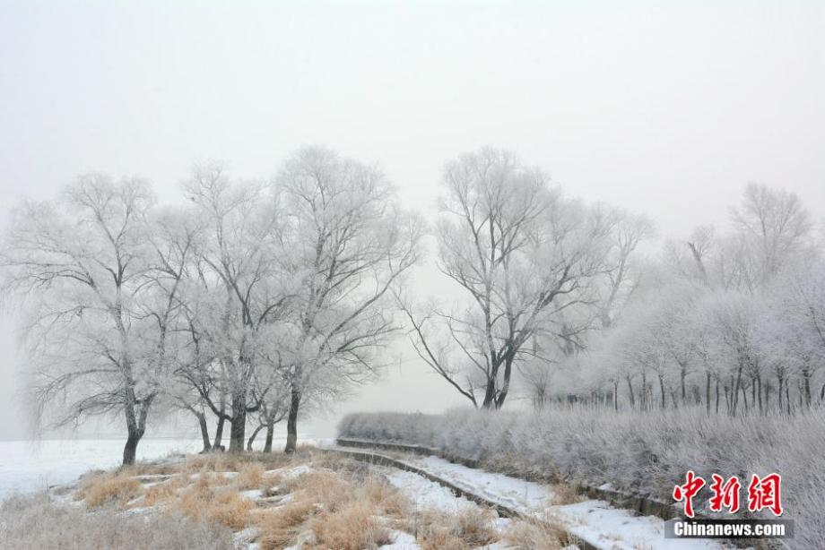 On March 3, 2015, beautiful rime turns the Songhua River into a fairyland in Jilin city, northeast China's Jilin province. (CNS/Wang Mingming)