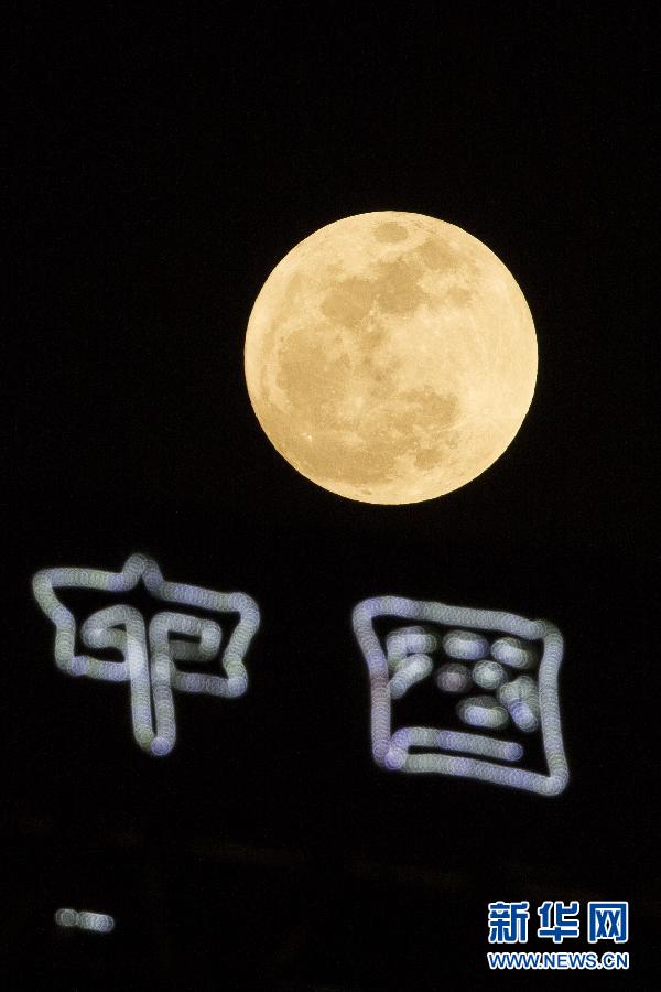 Photo taken on March 5, 2015 shows that a moon is seen in the sky at Lantern Festival's night in Beijing, capital of China. (Photo source:Xinhua)