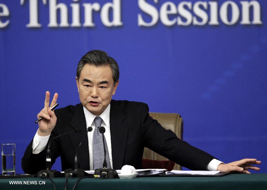 Chinese Foreign Minister Wang Yi gives a press conference for the third session of China's 12th National People's Congress (NPC) in Beijing, capital of China, March 8, 2015. (Xinhua/Yin Gang)
