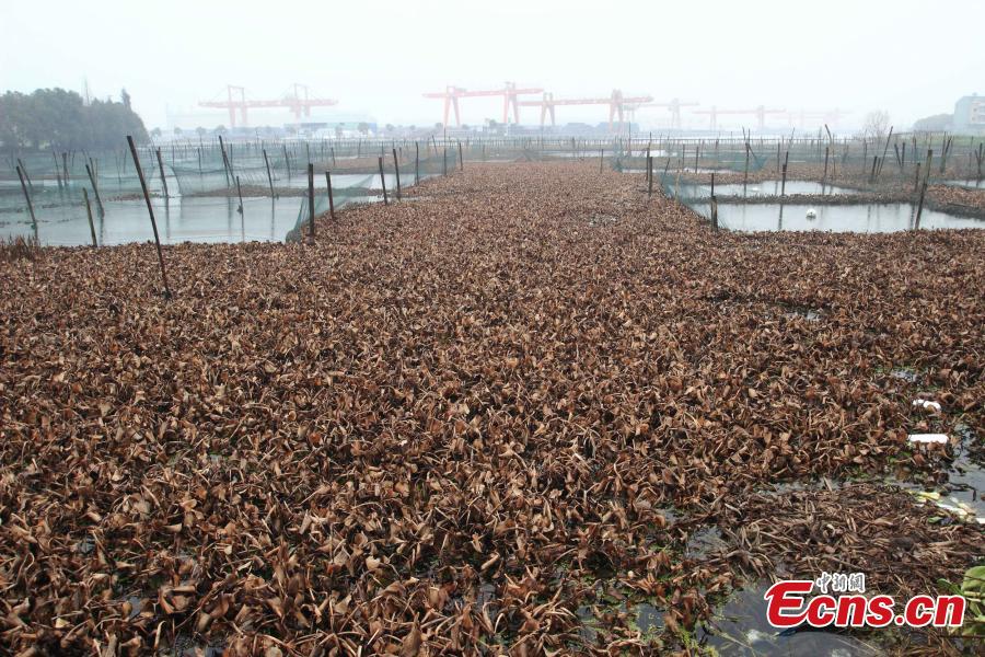 Water hyacinth is seen covering the Hangyong Canal in Shaoxing, East China’s Zhejiang province on March 8, 2015. The water plant clogs waterways in many places of China in recent years, choking fish and causing hardship for local fish farmers. (Photo: China News Service/ Li Ruichang)