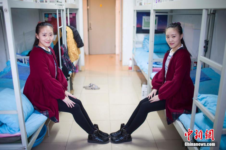 Hao Yushan and her twin sister Hao Jieshan always attract attention in a training school in Shanxi. They were born in 1996. Hao Yushan came to the world four minutes earlier than Hao Jieshan. Their close friends can easily distinguish them but other classmates or their teachers cannot. They resemble so much with nearly same figure. Becoming flight attendants has been their dreams since they were little girls. (Chinanews.com/Zhang Yun)