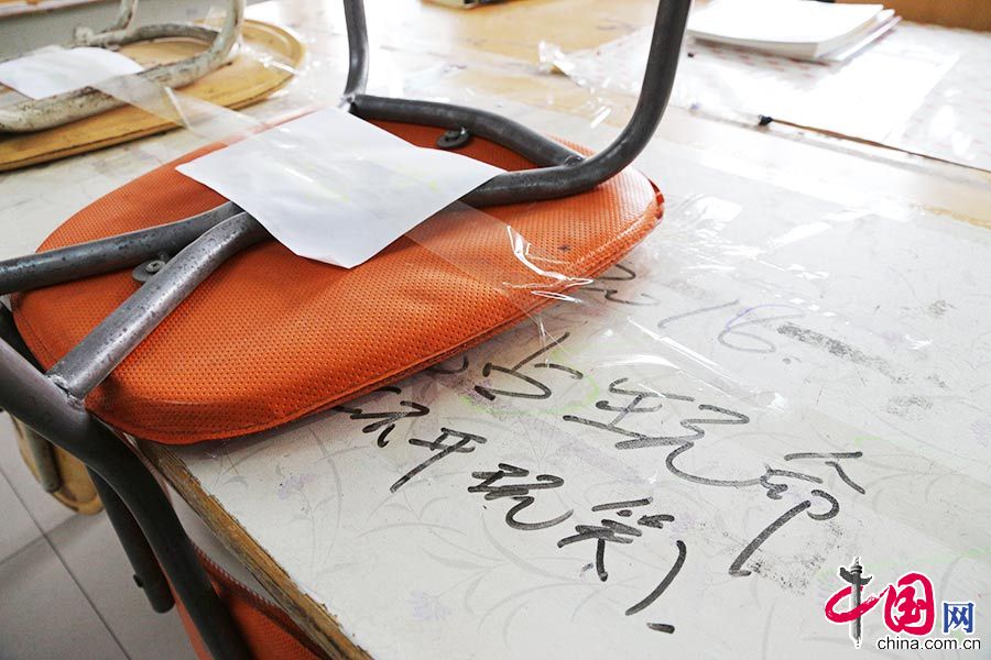 Students stick chairs on the desk with scotch tape and leave a message "Don't touch it, or I will risk my life to fight you."(Photo/China.com.cn)