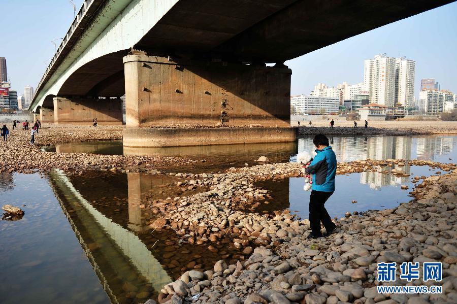 Pebbles in Yellow River exposed as water level drops (2)