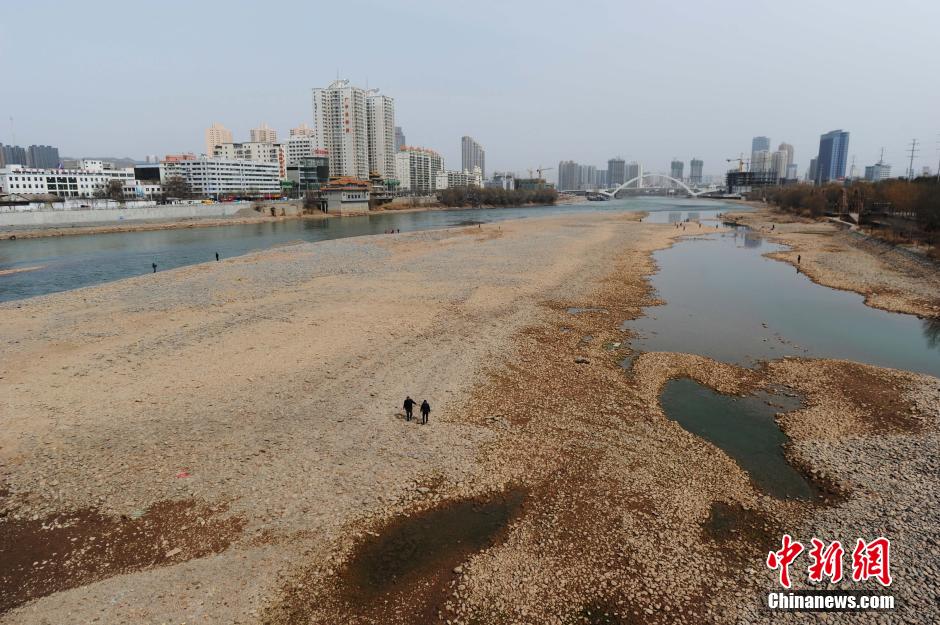 The riverbed of the Yellow River was exposed due to decrease in water supply from upstream which usually occurs in February and March, giving rise to collection of unique stones, a tradition that has a history of several hundred years. (CNS/Yang Yanmin)