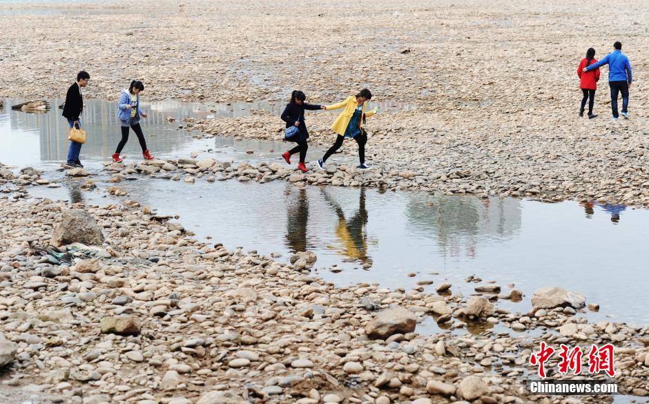 People pick up pebbles on the riverbed of the Yellow River in Lanzhou city, Northwest China’s Gansu province, March 8, 2015. The riverbed of the Yellow River was exposed due to decrease in water supply from upstream which usually occurs in February and March, giving rise to collection of unique stones, a tradition that has a history of several hundred years. (CNS/Yang Yanmin)