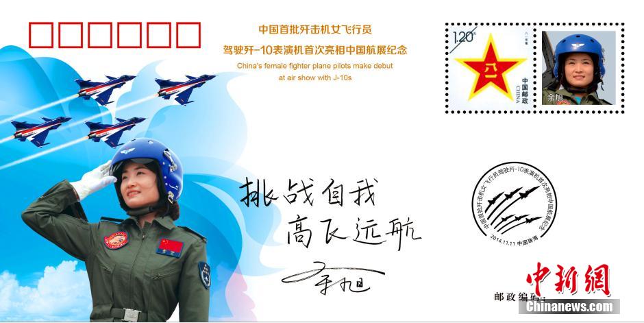 China’s female fighter pilots leave autographs on commemorative envelopes for their first oversea air show with J-10s. (CNS/ Zhang Pengyan)