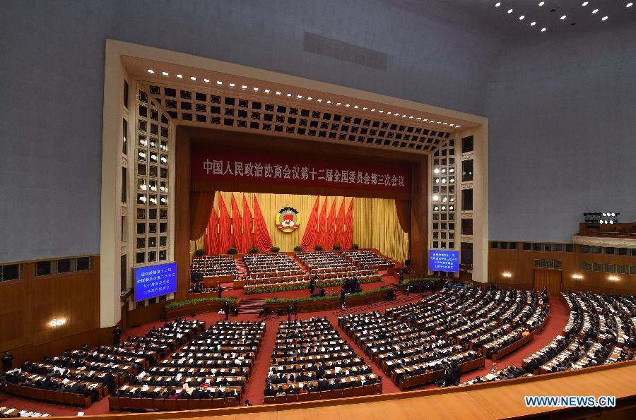 The closing meeting of the third session of the 12th National Committee of the Chinese People's Political Consultative Conference (CPPCC) is held at the Great Hall of the People in Beijing, capital of China, March 13, 2015. (Xinhua/Chen Yehua)