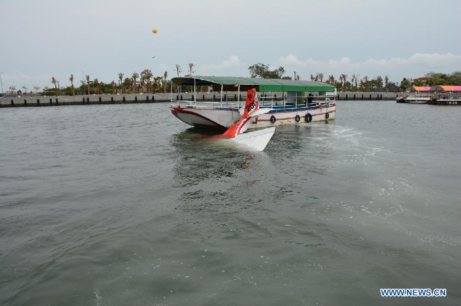 | Photo taken on March 16, 2015 shows the site of plane crash in Pingtung County, southeast China's Taiwan. A plane crashed into waters off Taiwan's Pingtung County at about 10 a.m. on Monday, according to local reports. Two people have reportedly been pulled from the water showing no sign of life. (Xinhua) |