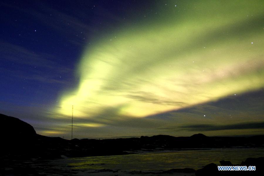 Photo taken on March 3, 2015 shows the scenery of aurora at the Zhongshan Station, a Chinese scientific research base in Antarctica. (Xinhua/Wang Gangyi)