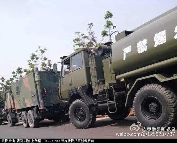Long queues of military trucks and missile carriers are said to have stationed on the China-Myanmar border on March 15, 2015. [Photo: weibo account of "guo gan zui xin zhan kuang"]