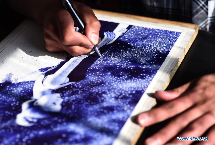 23-year-old painter Liu Kai creates a picture with a ball pen at home in Fushan County, north China's Shanxi Province, March 17, 2015. After graduating from high school, Liu had been working as a farmer and and a migrant worker until he started to pursue his dream of becoming a painter in 2012. His ball pen creations have become popular on the internet after several years of practice. (Xinhua/Yan Yan)