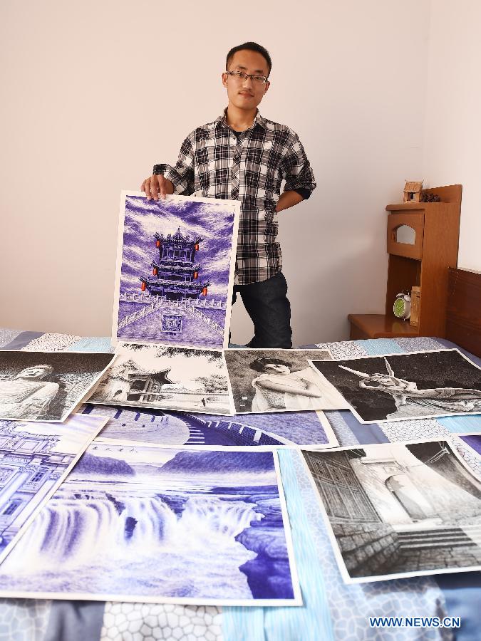 23-year-old painter Liu Kai creates a picture with a ball pen at home in Fushan County, north China's Shanxi Province, March 17, 2015. After graduating from high school, Liu had been working as a farmer and and a migrant worker until he started to pursue his dream of becoming a painter in 2012. His ball pen creations have become popular on the internet after several years of practice. (Xinhua/Yan Yan)
