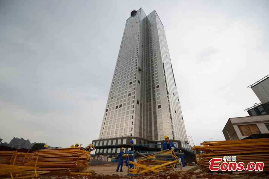 A 57-story skyscraper is in its final stage in Changsha, capital of Central China’s Hunan province, Mar 17, 2015. With its steel frame structure standing tall, the building was finished in just 19 days with 1,200 workers working round-the-clock, said He Youxian, an executive overseeing the construction site. The building can withstand 9 magnitude earthquake. (Photo: China News Service/ Yang Huafeng)