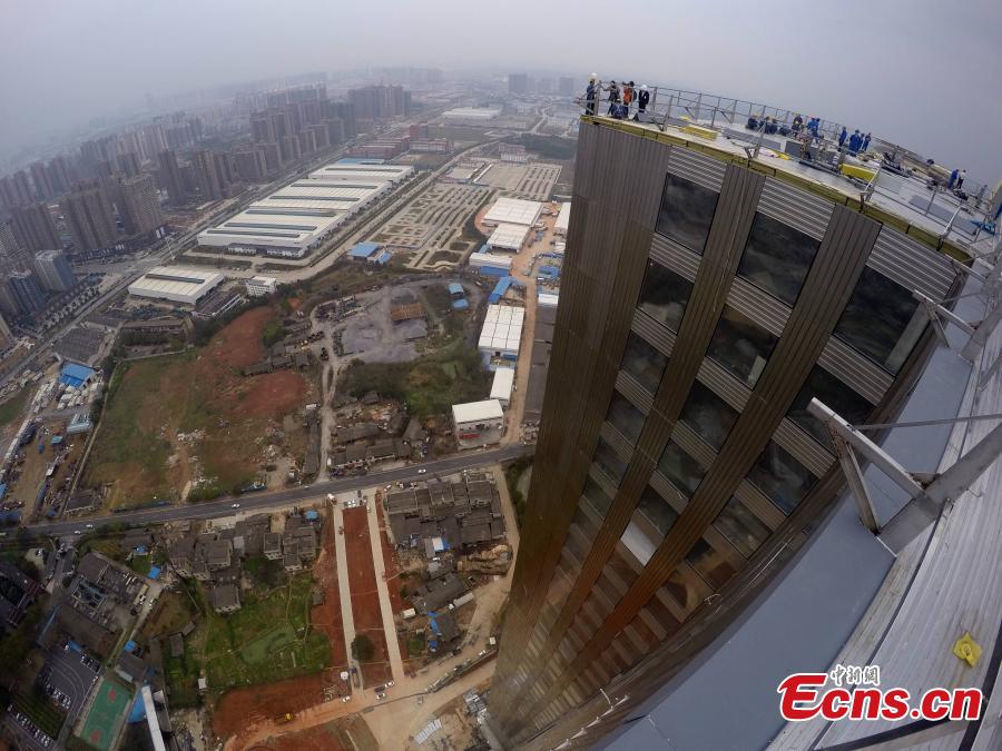 A 57-story skyscraper is in its final stage in Changsha, capital of Central China’s Hunan province, Mar 17, 2015. With its steel frame structure standing tall, the building was finished in just 19 days with 1,200 workers working round-the-clock, said He Youxian, an executive overseeing the construction site. The building can withstand 9 magnitude earthquake. (Photo: China News Service/ Yang Huafeng)