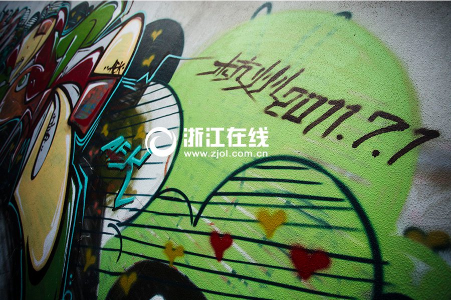 New graffiti on the walls of Youyong Alley in Hangzhou attract pedestrians’ attention and slow their steps down. The color splash on the walls gives people a reason to slow down and enjoy the beauty of life. (Zhejiang Online/Tong Xiaolei)